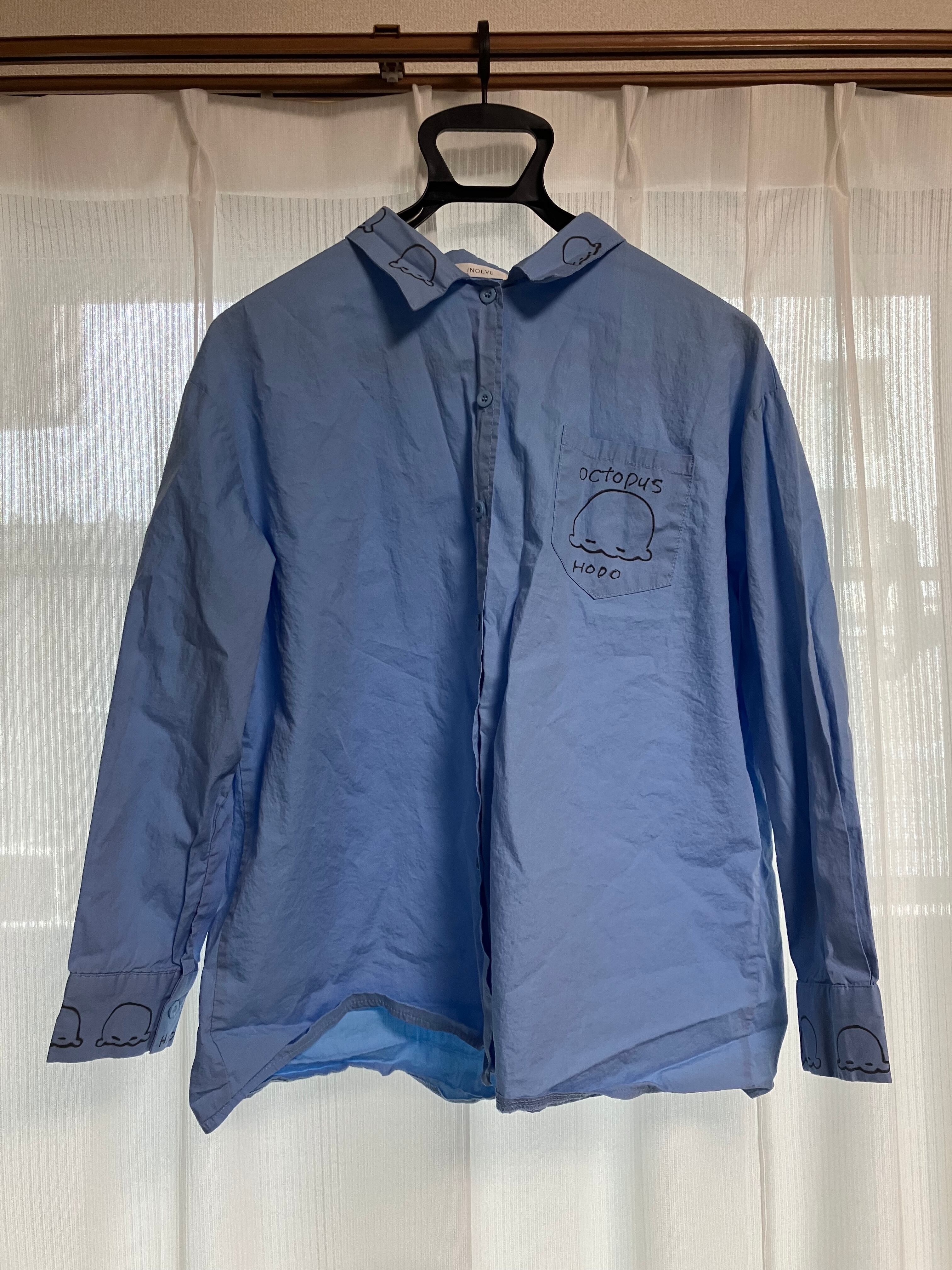 古着ワイシャツにマッキーで絵を書きました。洗濯しても落ちませんがネットに入れて洗濯してください。Lサイズです。手書き商品なので一点ものです。モデルは161cmです。